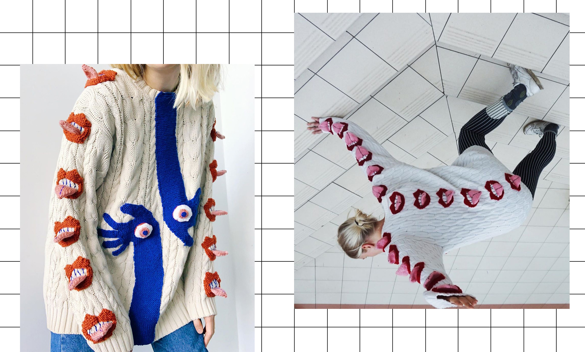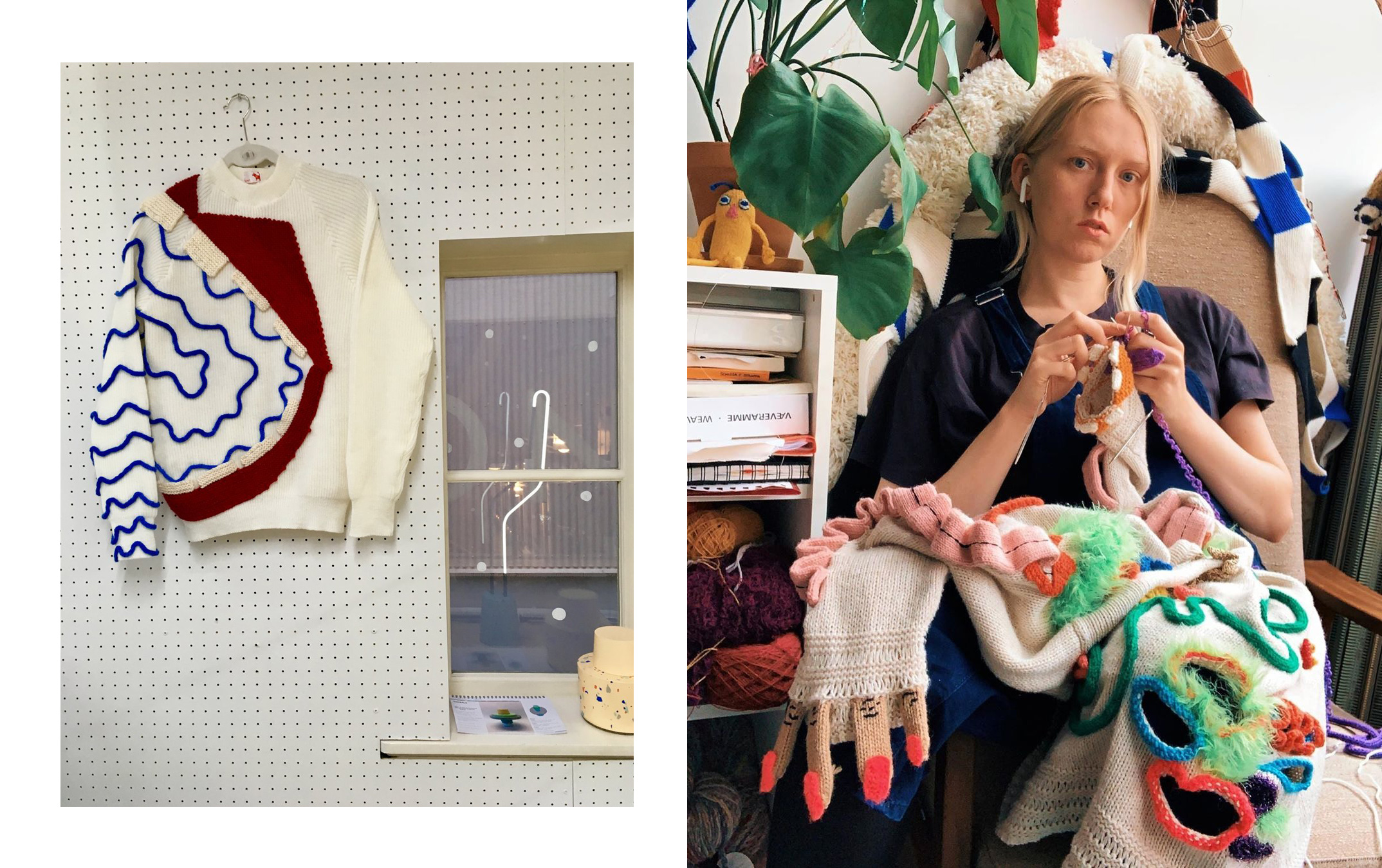 We are thrilled to welcome, Ýrúrarí (pronounced as “ear-oo-rari”), textile designer and artist from Iceland on the Pop Sick blog. As many of you, we are big fans of her knitting and textile work, so, it was lovely to chat about her ‘walking art’ and recent upcycling projects. Keep reading if you do not know the sleik-zine, her experimental knitting manual which is pure awesomeness!