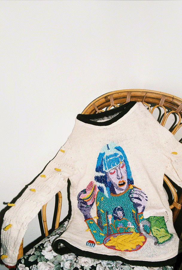 Ý: Sometimes I wear stuff that I make, but always when I make something for myself someone buys it from me, I guess I can’t really afford my creations! But of course I do have some pieces that I sometimes wear. I’m hoping I’ll find time soon to make another tongue sweater that I can wear, my partner has been asking for a tongue sweater for a while and I guess I can’t really sell something she owns, then I can just share it with her and use it myself some days. The last two I’ve made for myself have been snatched away from me (but sold..).