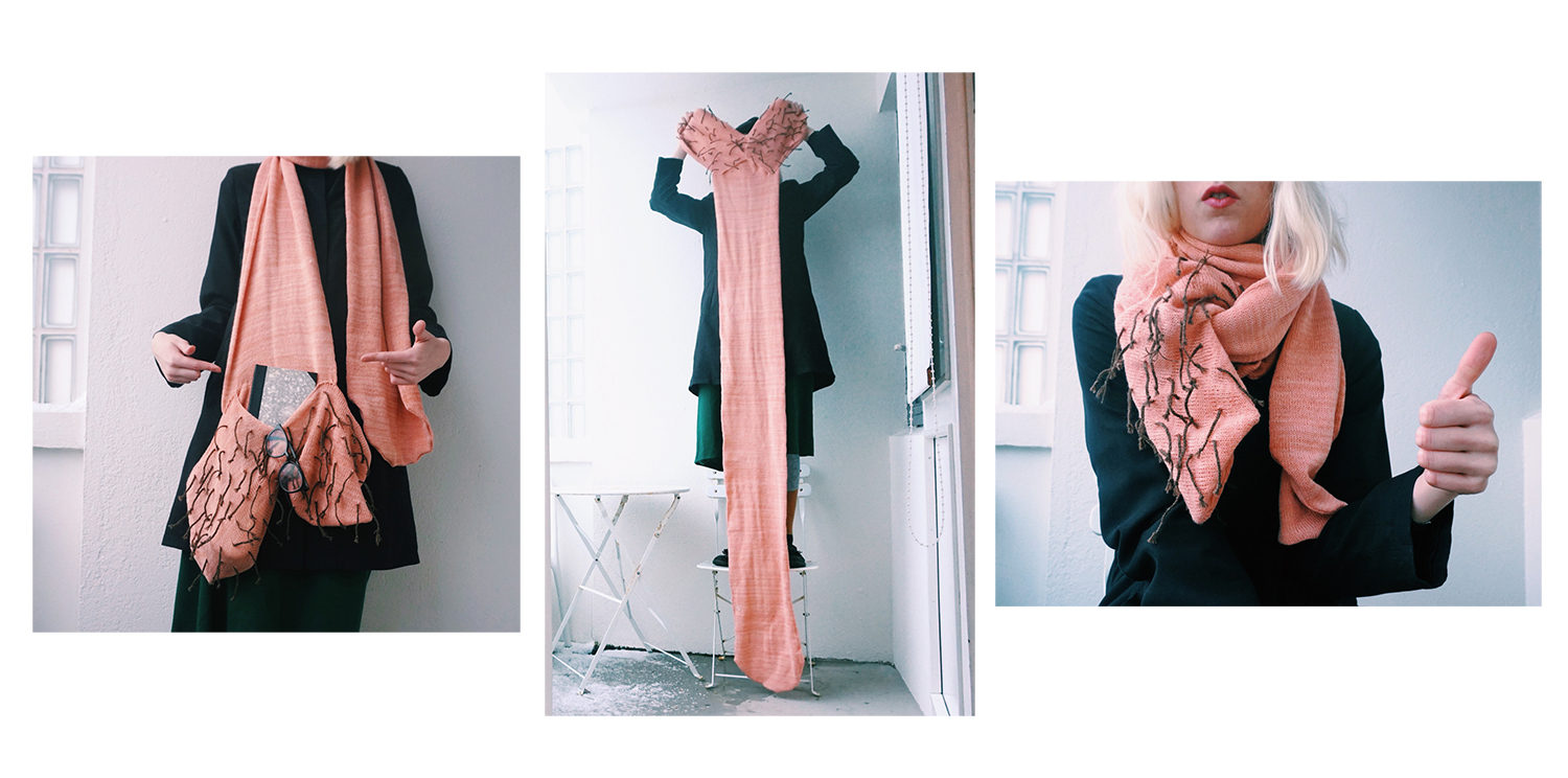 Ý: Good question! I simply don’t really know….I just really connect with it, and we all do, we all have those things with us every day, they are us and we use them to do so many things! It also connects with the clothes, we use them to cover and complement our bodies, keeping them warm or trying to give them some air. Then they move with the bodies and our movements can make them change, there is just something fun and playful about it!