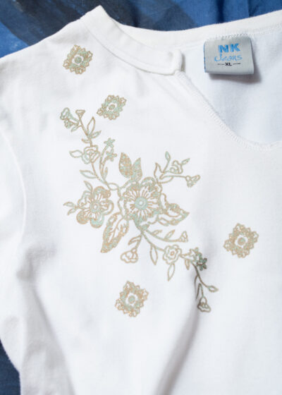 Vintage Y2K Baby Tee in White with Gothic Cross