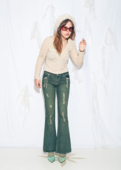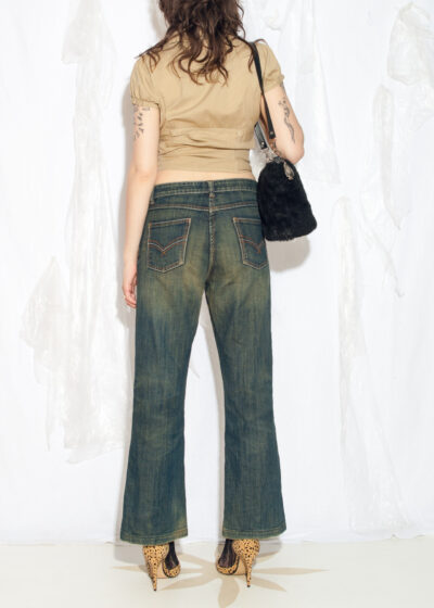 Reworked Vintage Y2K Flare Jeans in Mud Wash Green