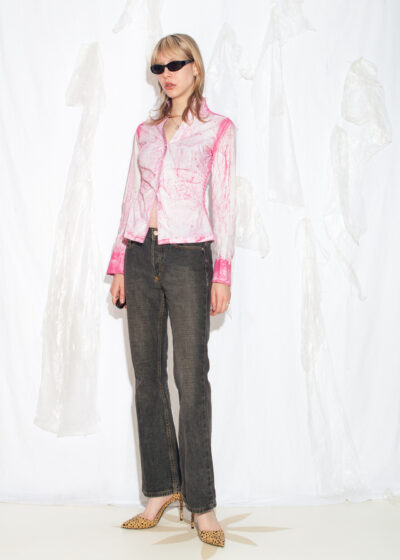 Reworked Vintage Y2K Mud Wash Flare Jeans with Bows