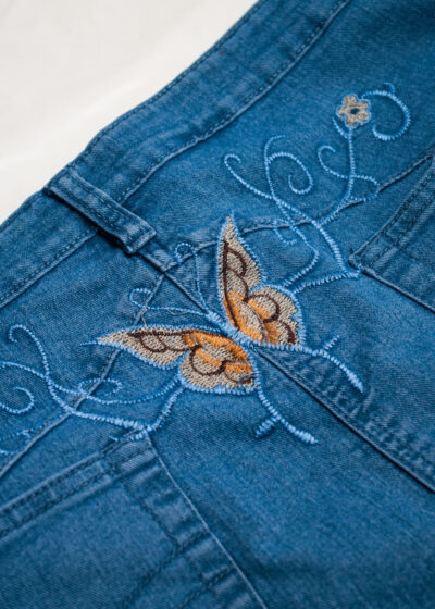 Vintage Y2K Denim Blazer Jacket w Butterfly Embroidery