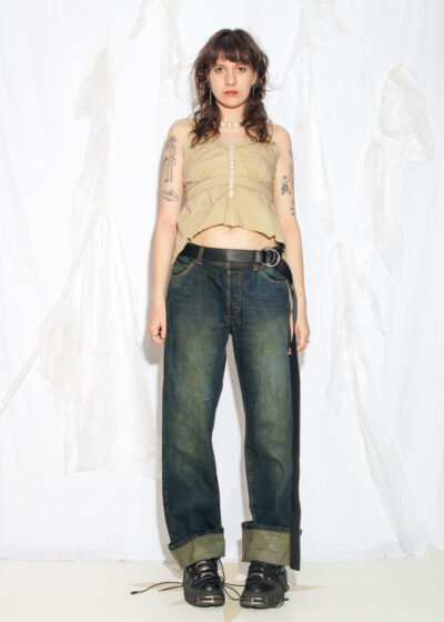 Reworked Vintage Y2K Cotton Top in Overdyed Beige