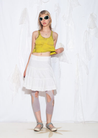 Vintage Y2K Tiered Maxi Skirt in White Cotton
