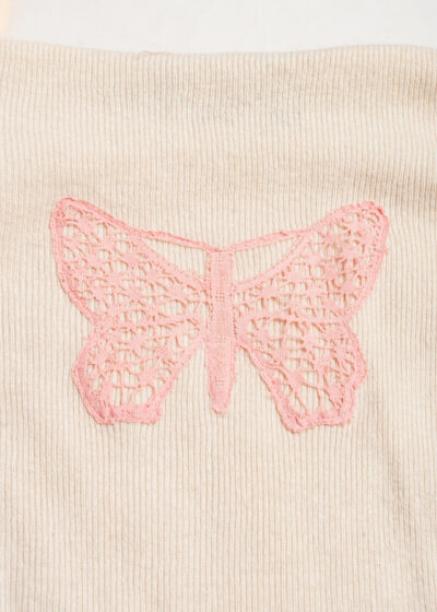 Reworked Vintage Y2K Silk Cashmere Jumper w Butterfly Lace