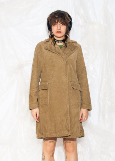 Vintage Y2K Trench Coat in Beige Faux Fur Collar