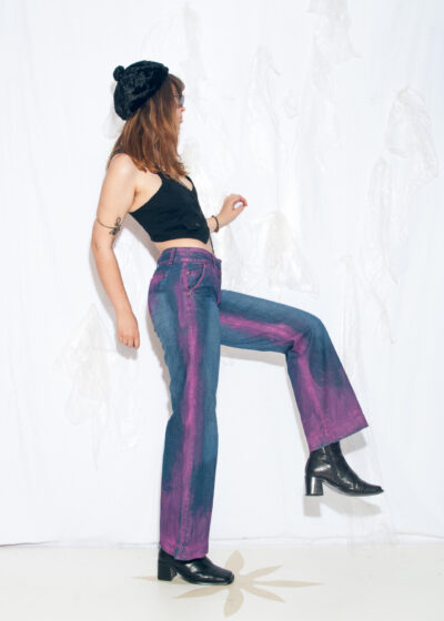 Vintage Y2K Zip Leg Flare Jeans in Hand Painted Purple