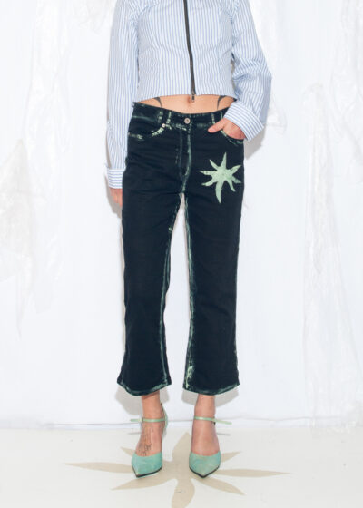 Reworked Vintage Y2K Painted Flare Capri Jeans in Green