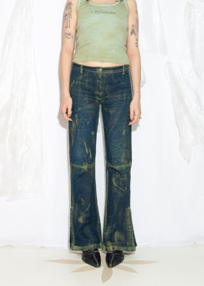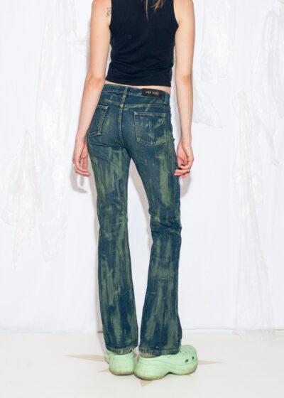 Reworked Vintage Y2K Dirty Painted Flare Jeans in Green