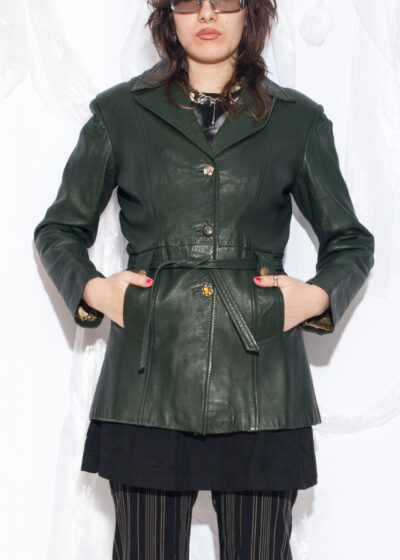 Vintage 70s Leather Coat in Green w Mismatched Buttons