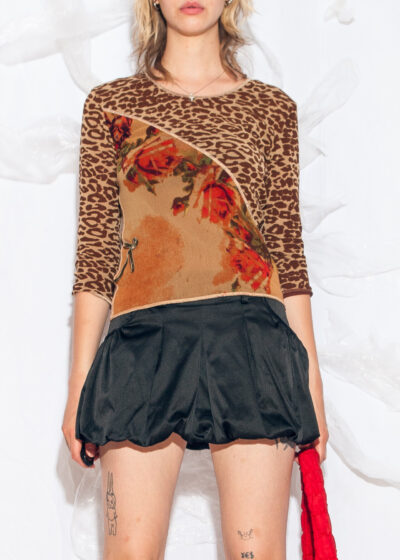 Vintage Y2K Leopard Flower Mesh Top in Green
