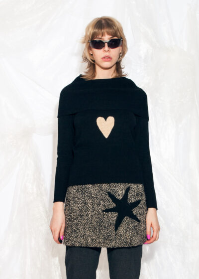 Vintage Y2K Knit Jumper in Black w Reworked Heart Patch