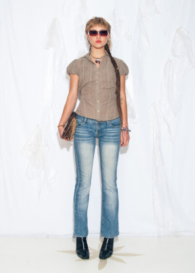 Vintage Y2K Overlap Blouse in Mud Wash Green