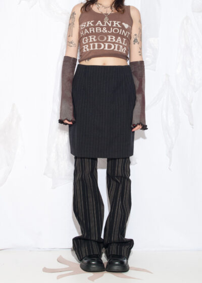 Vintage Y2K Un Deux Trois Office Skirt in Grey Pinstriped