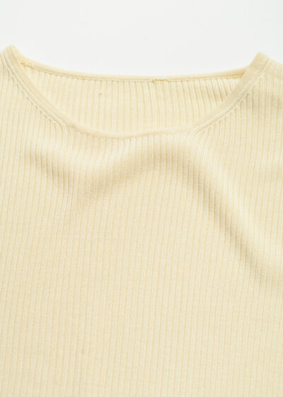 Vintage 90s Silk Ribbed Baby Tee in Pastel Yellow