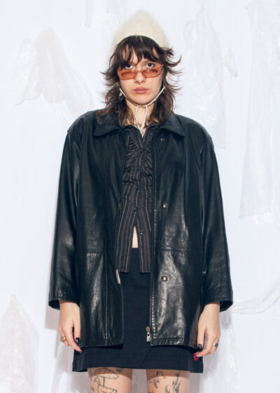 Vintage 80s Oversized Leather Coat in Black