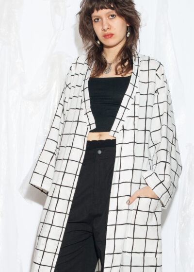 Vintage 80s Kimono Robe in Black and White Checked