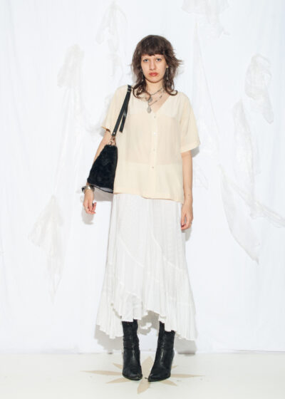 Vintage Y2K Shirt in Silver Grey Whimsigoth Embroidered