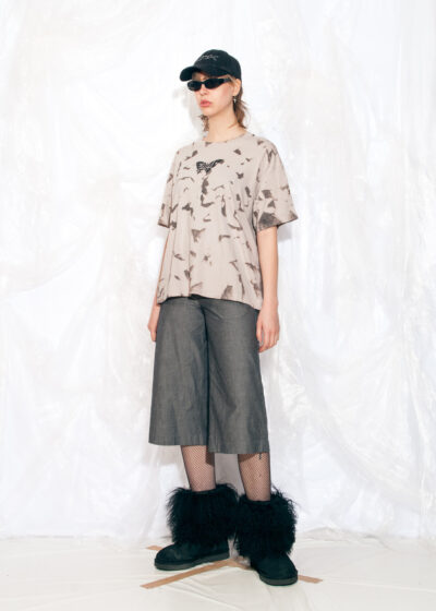 Vintage Y2K Reworked Oversized Tee in Beige Printed