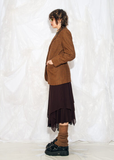 Vintage 80s Oversized Blazer in Grunge Plaid Brown Wool