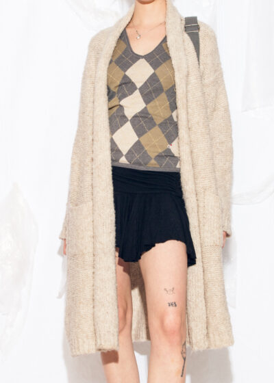 Vintage Y2K Oversized Knit Cardigan in Beige Wool Blend
