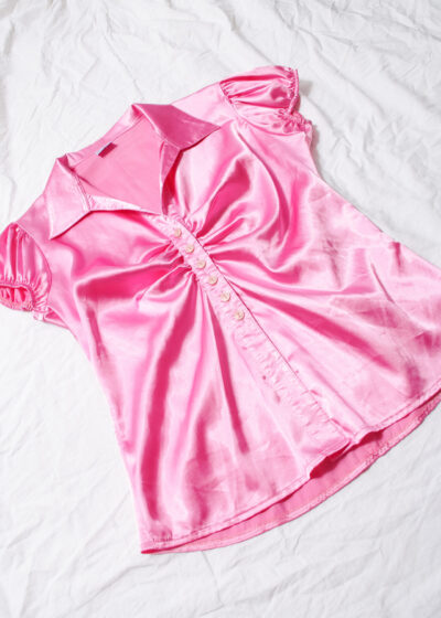 Vintage Y2K Ruched Satin Blouse in Barbie Pink