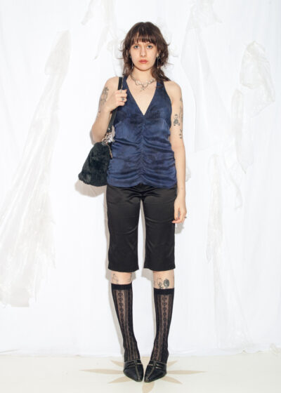 Reworked Vintage Y2K Silk Ruched Top in Blue