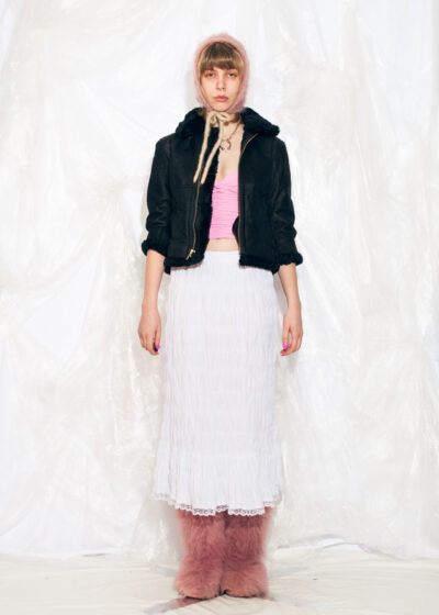 Vintage Y2K Leather Jacket in Black w Real Fur
