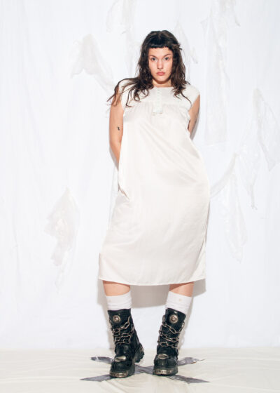 Vintage 50s Satin Slip Dress in White
