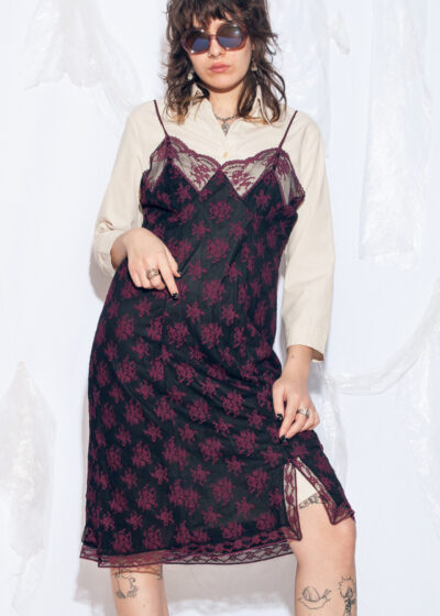 Vintage 70s Whimsigoth Slip Dress in Maroon Lace