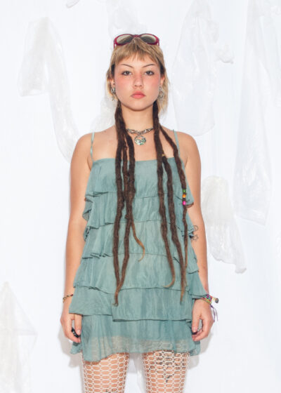 Vintage Y2K Frilly Silk Mini Dress in Pastel Teal