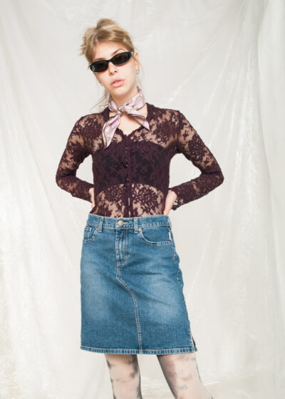 Vintage Y2K Wool Blend Dark Coquette Skirt in Brown