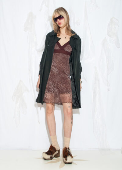 Vintage Y2K Wool Mohair Blend Mini Dress in Brown