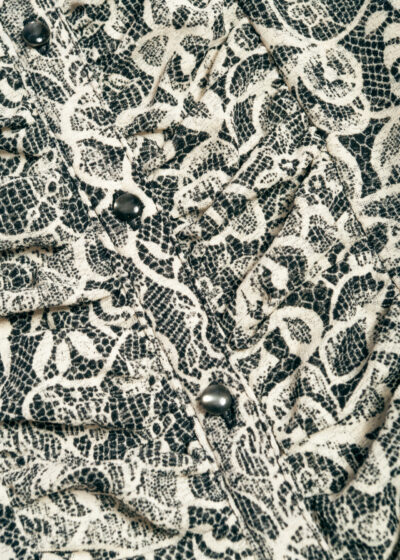 Vintage Y2K Lace Printed Blouse in Black Beige