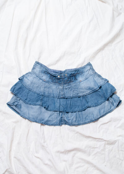 Vintage Y2K Frilly Denim Mini Skirt in Blue