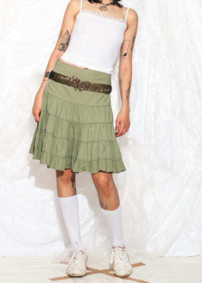 Vintage Y2K Tiered Midi Skirt in Green