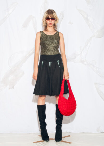 Reworked Vintage Y2K Midi Skirt in Black with Bows