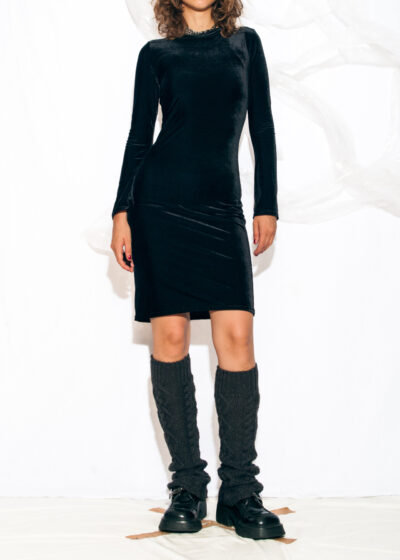 Vintage Y2K Velvet Mini Dress in Black