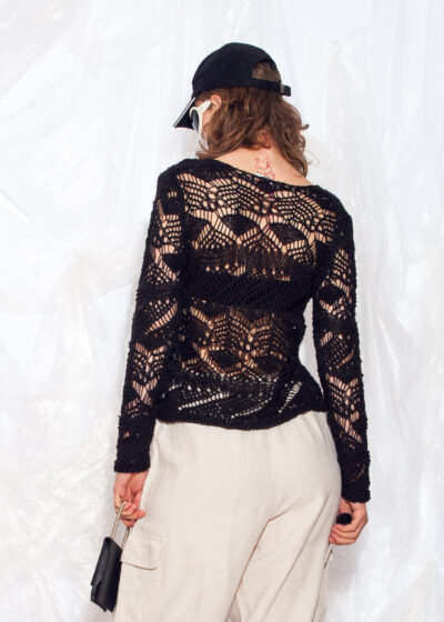 Vintage Y2K Knit Cardigan in Black w Whimsical Embroidery