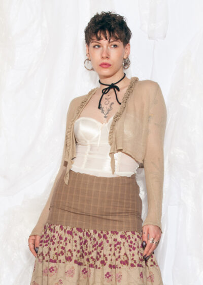 Vintage Y2K Betty Barclay Frilly Cardigan in Beige