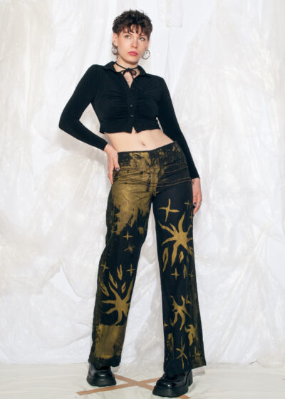 Vintage Y2K Reworked Wide-Leg Pants in Painted Black Linen