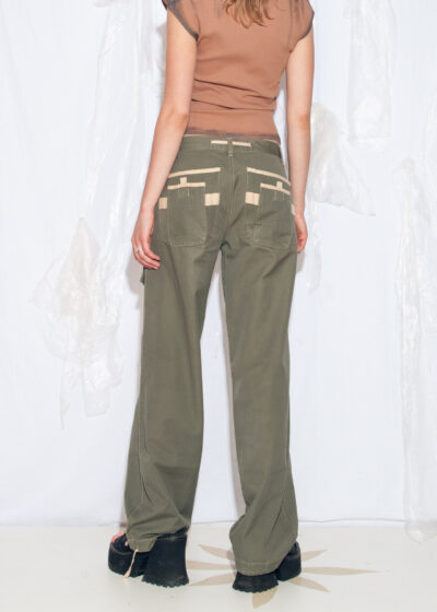 Reworked Vintage Y2K Linen Trousers in Hand-Painted Green