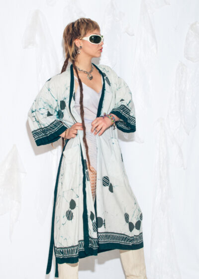 Vintage 90s Festival Kimono Coat in Green Cotton