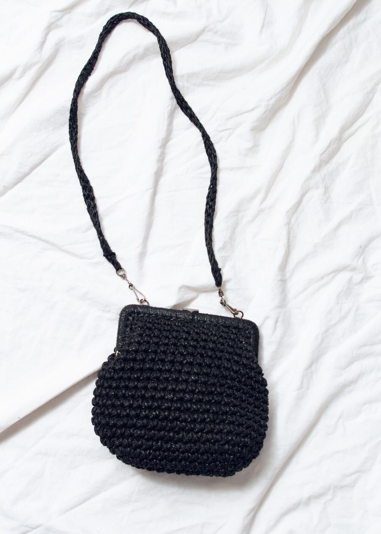 Be the first to review “Vintage 60s Crocheted Shoulder Bag in Black” Cancel reply