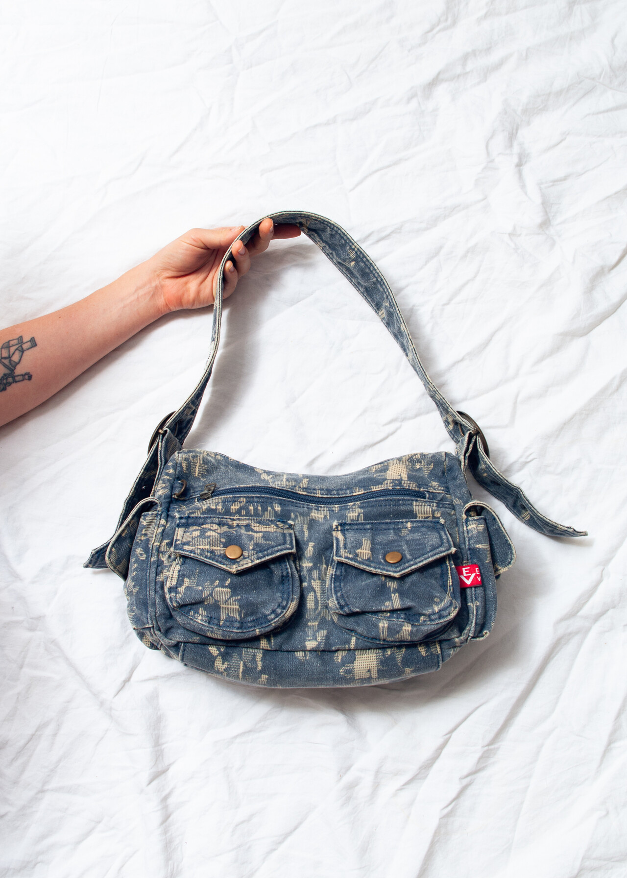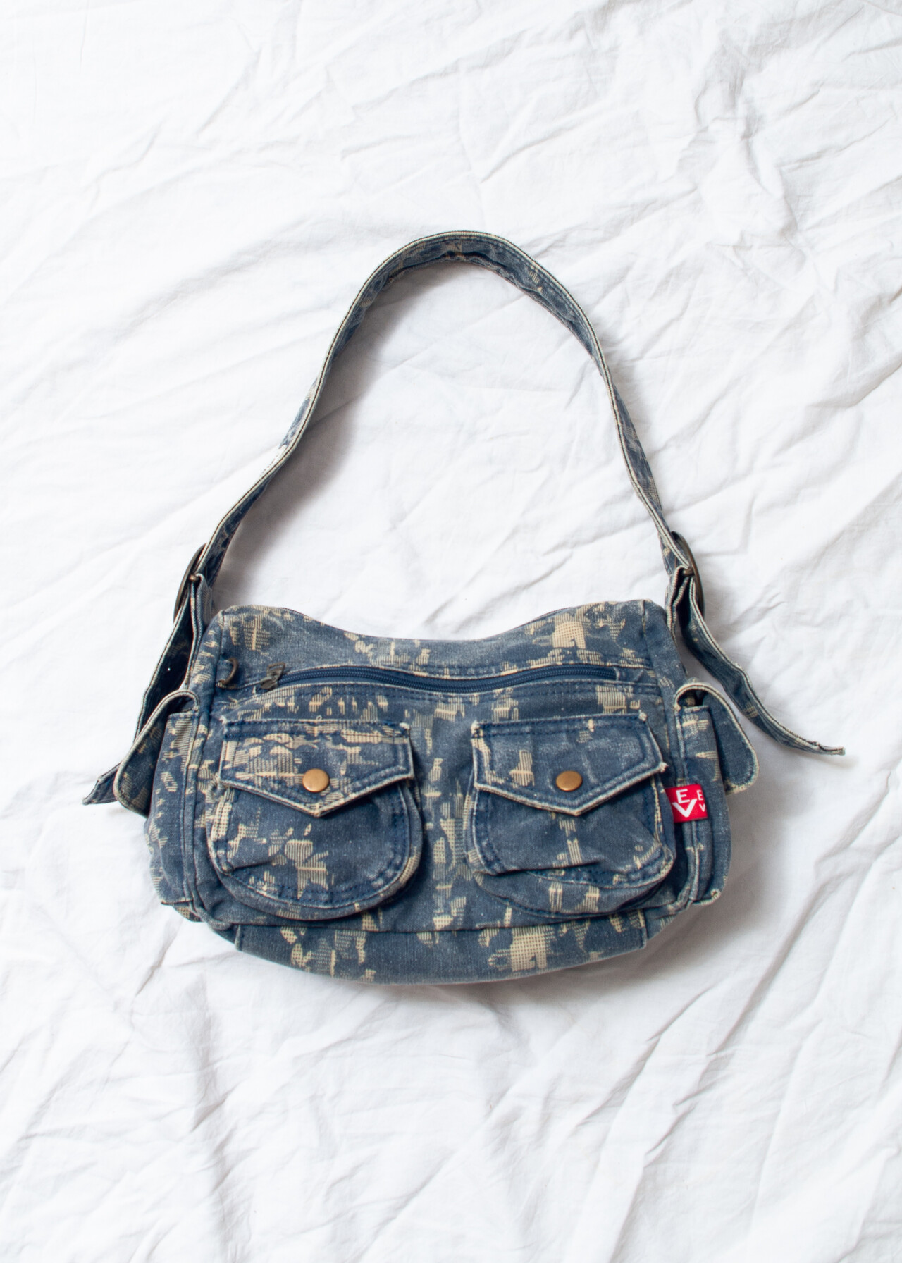 Tags: 2000s style clothing, canvas bag, cyber grunge outfit, denim shoulder bag, pinterest aesthetics, pocketed purse, y2k accessories, y2k vintage fashion