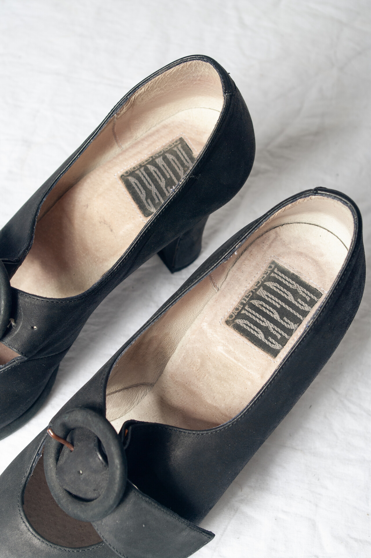 These 90s vintage shoes by Kaláka Design Studio are your ticket to strut down memory lane in genuine suede and high heel style. With black real leather and a dash of 70s flair, these designer shoes are ready to party like it’s 1992!