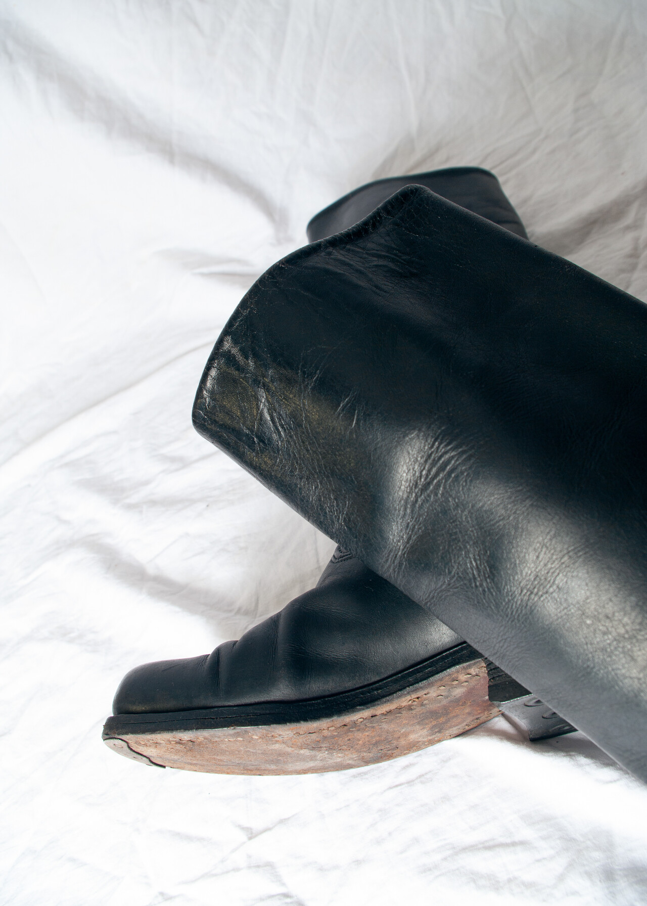 Tags: 40s vintage clothing, antique shoes, equestrian boots, knee high boots, minimalist style, real leather boots, riding boots, y2k style accessory