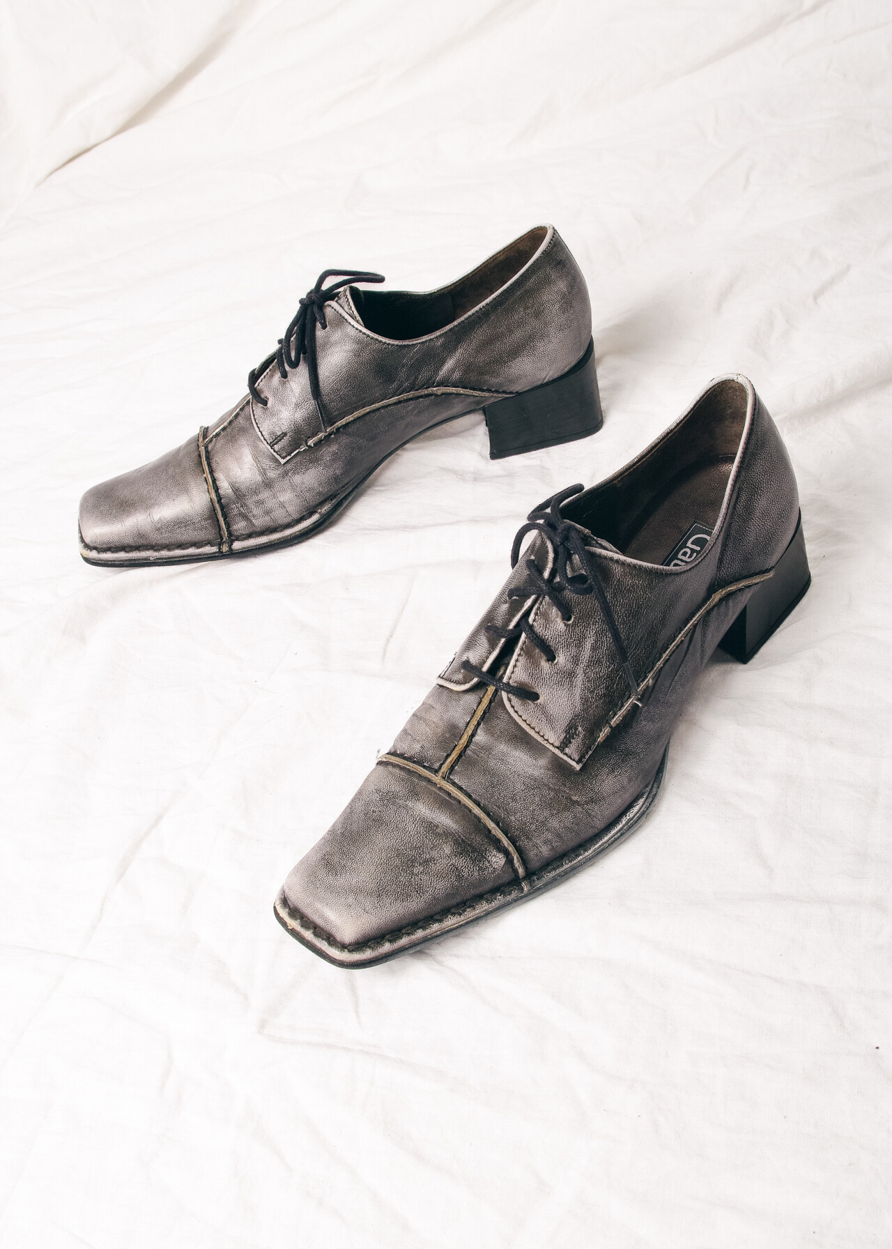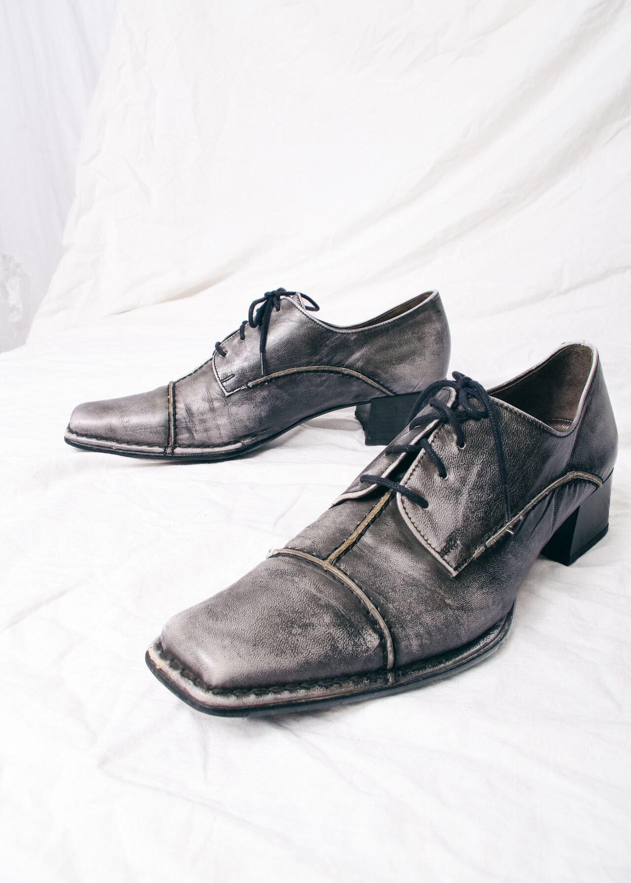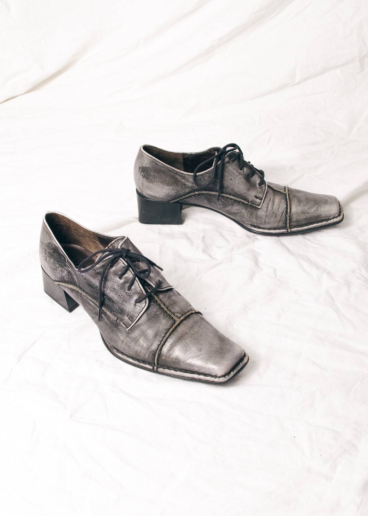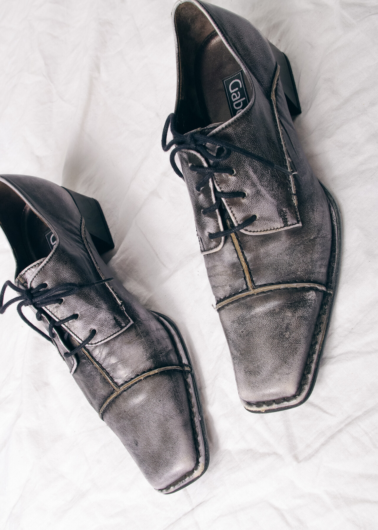 Vintage Y2K Leather Shoes in Stonewashed Grey