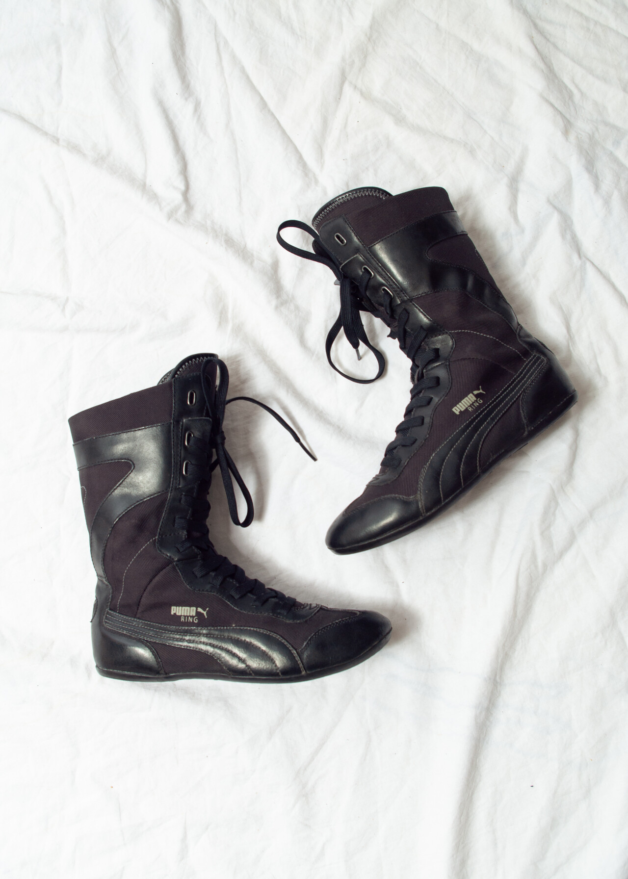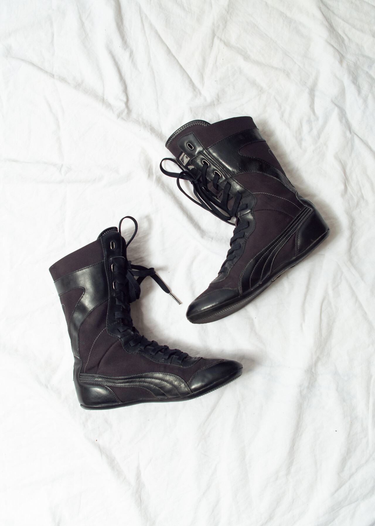 Tags: 00s streetwear look, 2000s vintage fashion, boxing boots, leather boots, Puma boots, sporty coquette, wrestling shoes, y2k grunge outfit, y2k style accessory